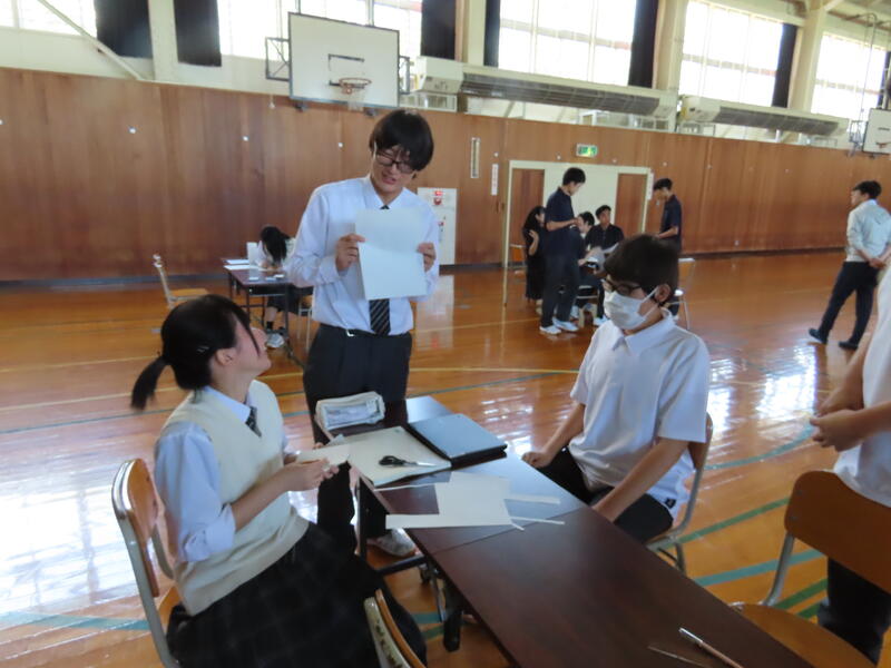 地歴公民科の授業で、国際社会が抱える現状や課題について疑似体験を通して理解する「貿易ゲーム」を全校生徒で行いました。